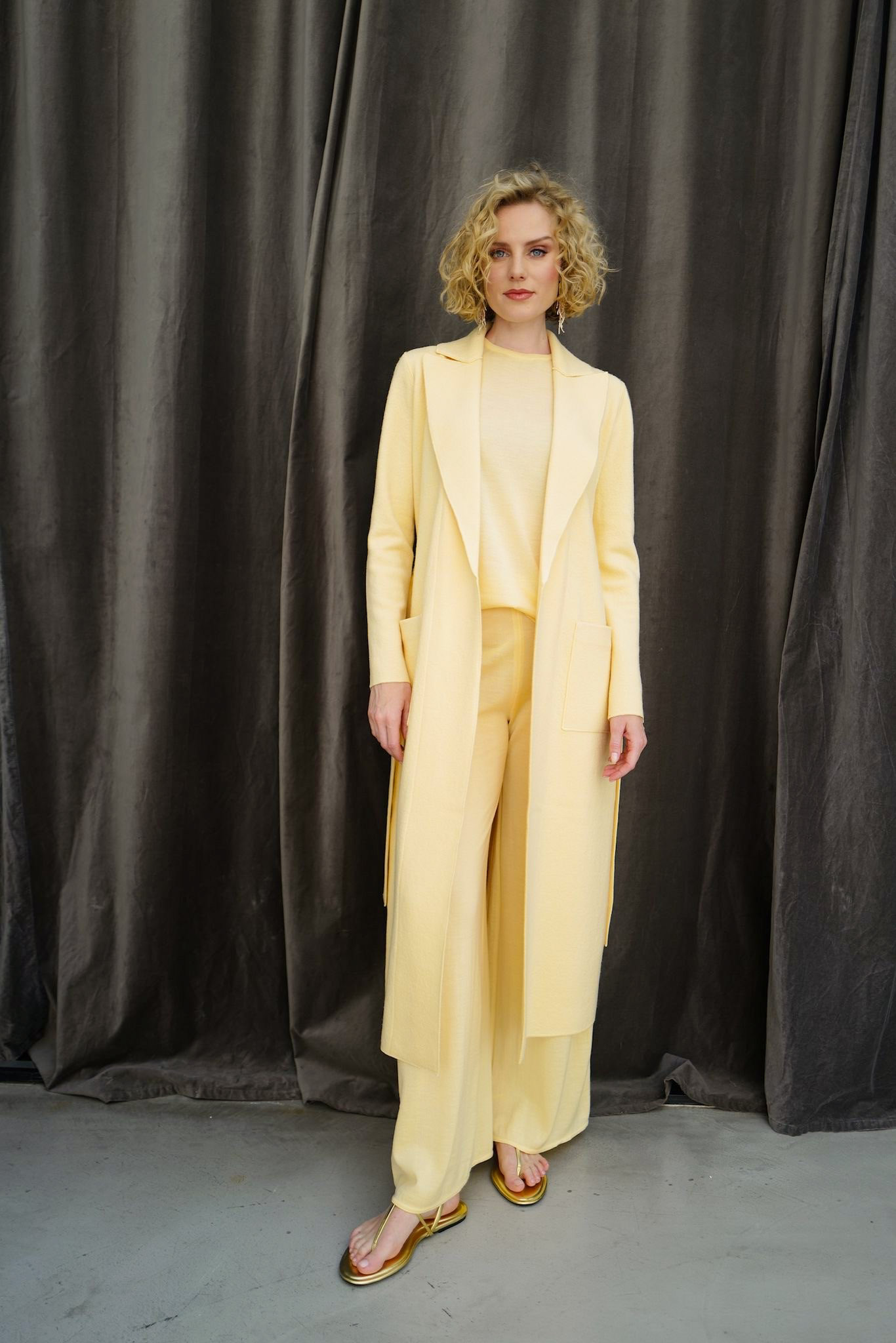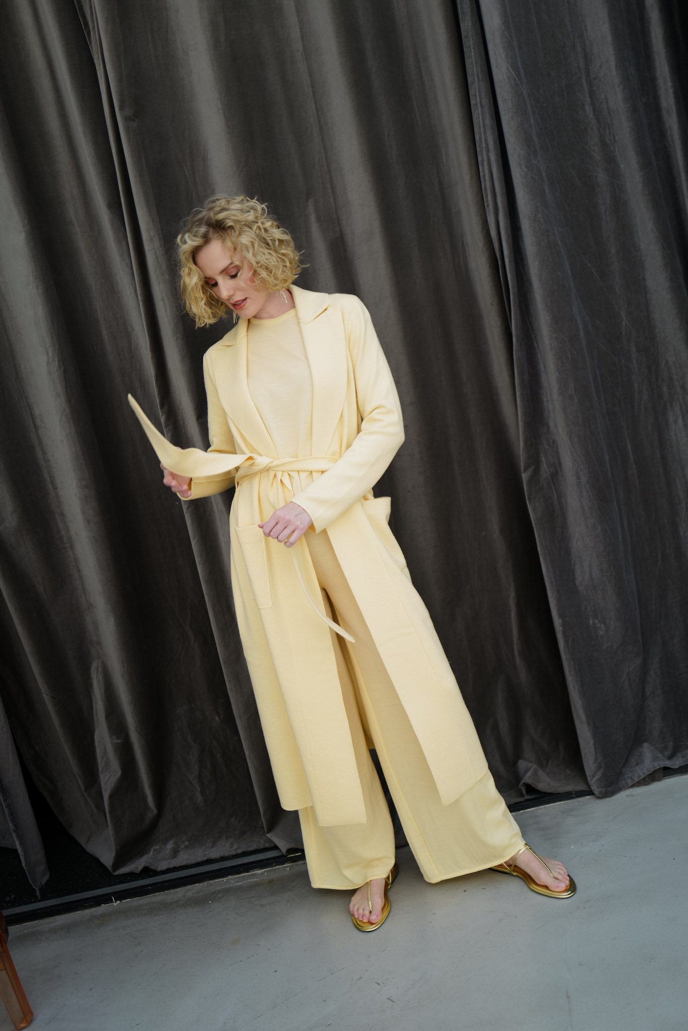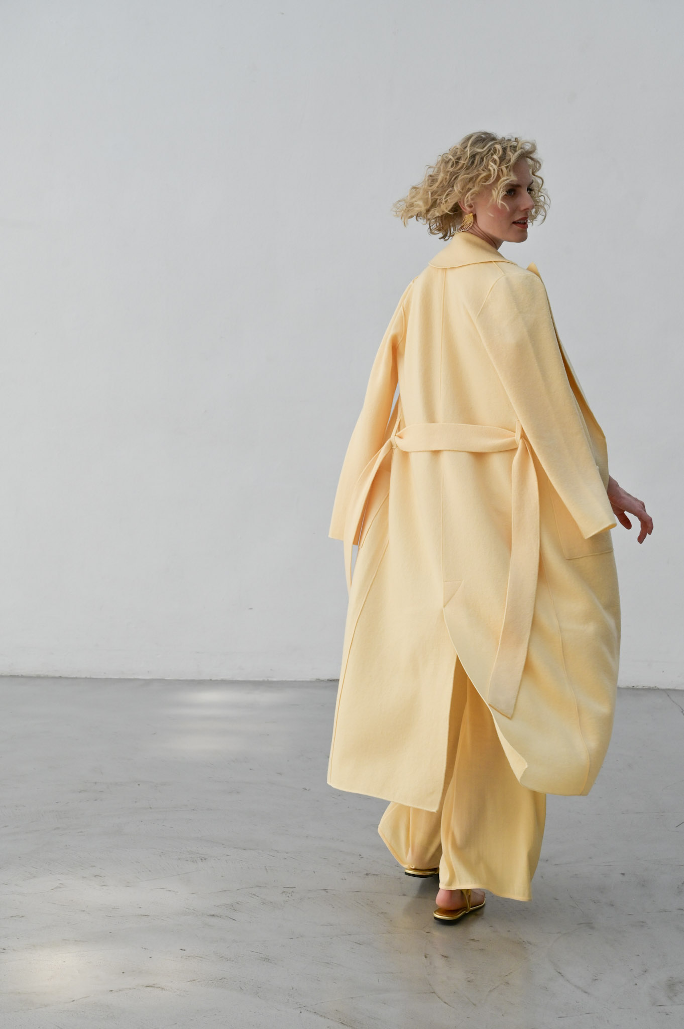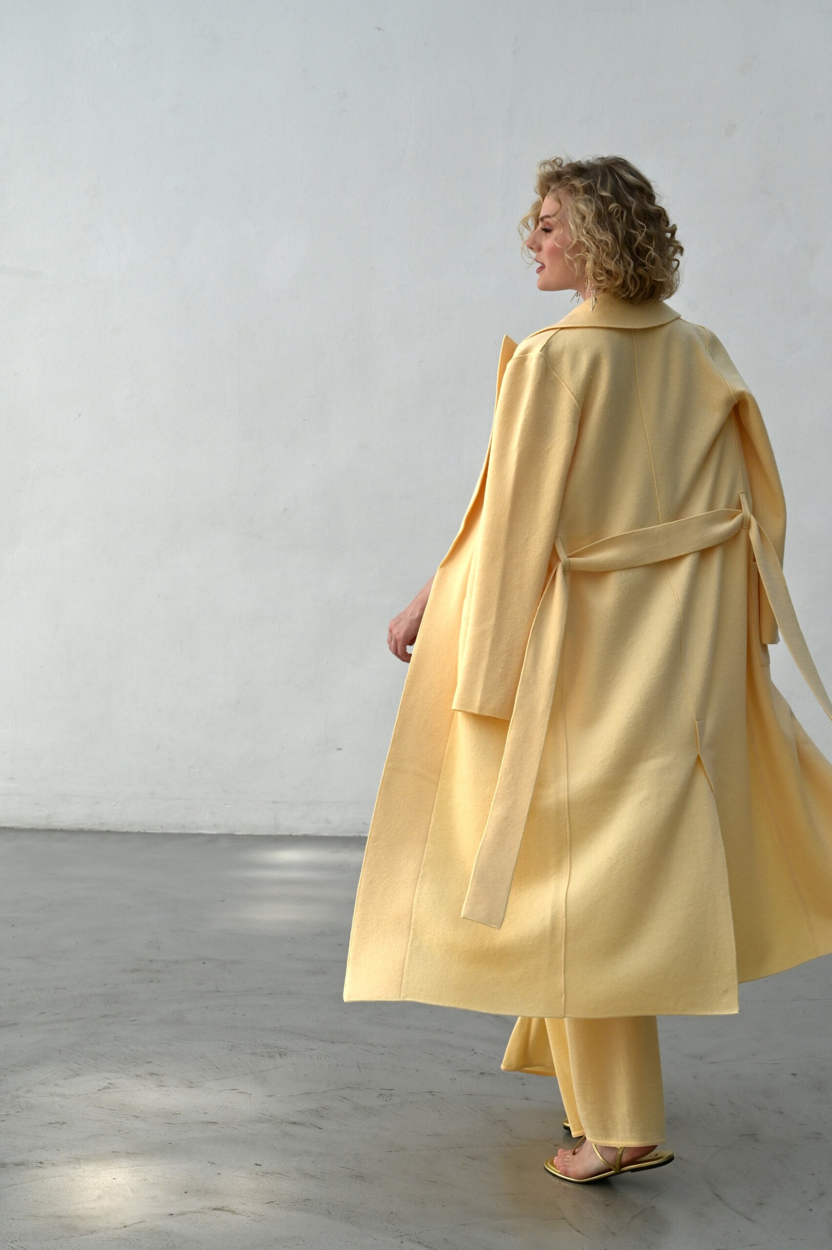 Langer Mantel aus 100% extrafeiner Merinowolle, gewalkt.