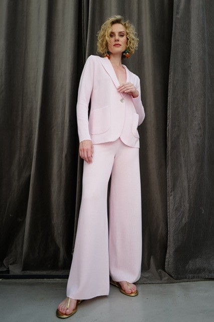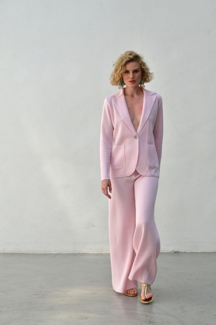 Das wunderschöne Doppelreiher Sakko ist schmal und tailliert geschnitten.